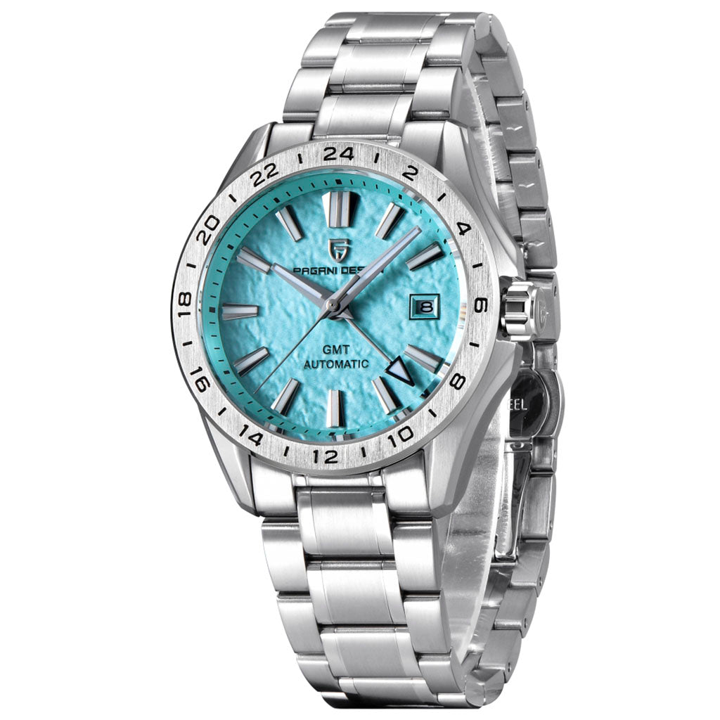 Eigenschaften Garantie1 JahrDurchmesser42 mmDicke14 mmGewicht89,5 gWasserdichtigkeit100 mUhrwerkAutomatikHerstellungPagani Design™KaliberM2791BFunktionStunden, Minuten und SekundenGangreserveCa. 24 Stunden WASSERDICHT BIS...
