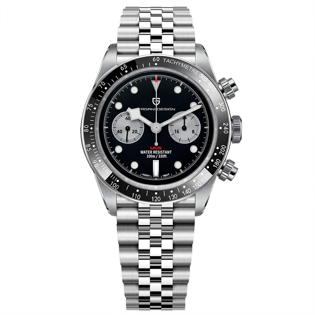 Eigenschaften Garantie1 JahrDurchmesser42 mmDicke12 mmGewicht143 gWasserdichtigkeit100 mUhrwerkQuarz, Seiko VK63HerstellungSeiko Movements™KaliberSeiko VK63FunktionStunden, Minuten und SekundenGangreserveNicht anwendbar...