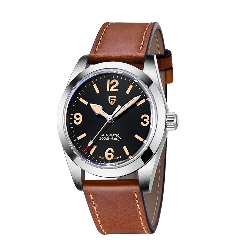 Eigenschaften Garantie1 JahrDurchmesser38 mmDicke11,7 mmGewicht85,5 gWasserbeständigkeit100 mUhrwerkAutomatik, B-Y 9020ArmbandmaterialKunstlederFunktionenStunden, Minuten und SekundenGangreserveCa. 45 StundenHerstellungPagani Design...