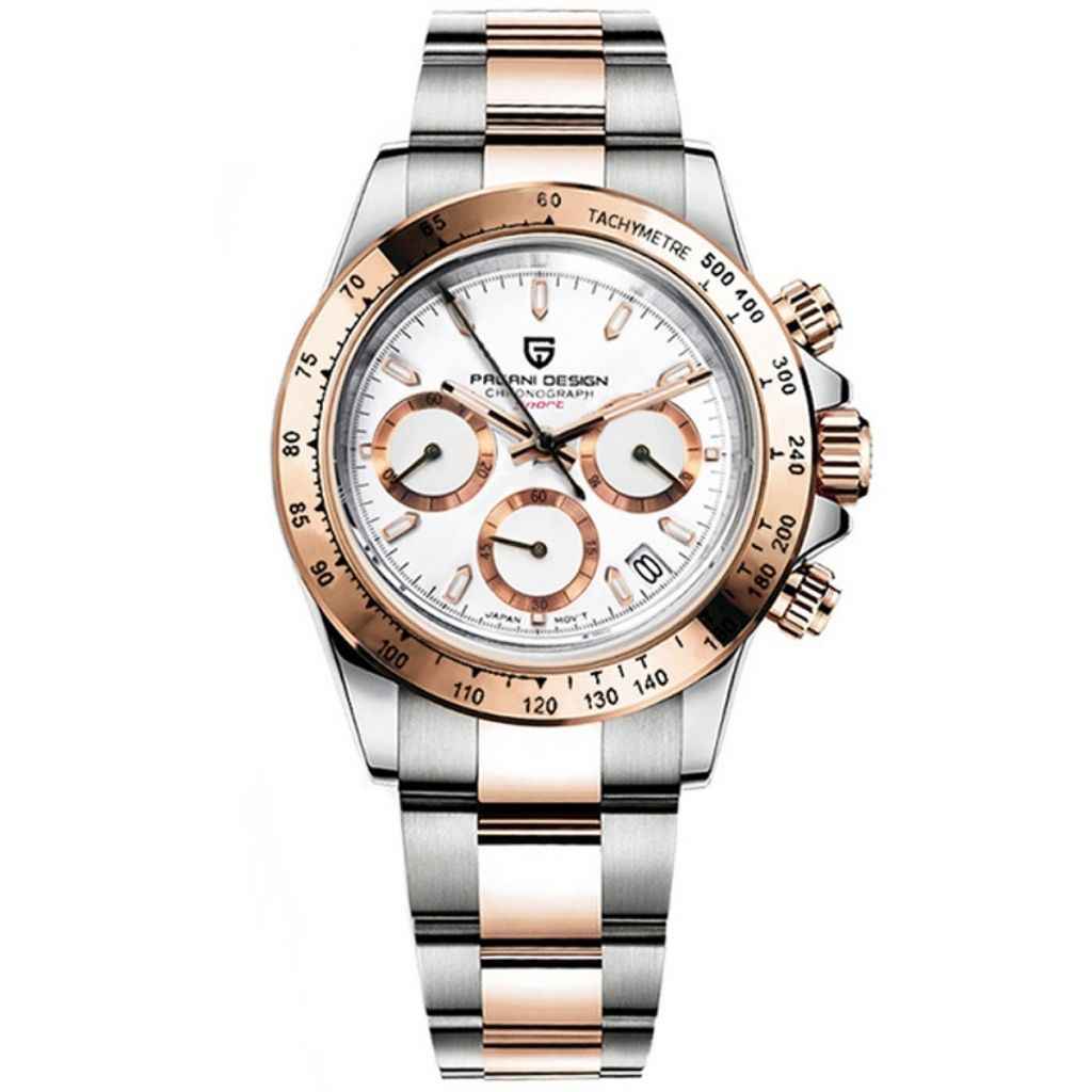 Eigenschaften Garantie1 JahrDurchmesser42 mmDicke12 mmGewicht143 gWasserdichtigkeit100 mUhrwerkQuarz, Seiko VK63HerstellungSeiko Movements™KaliberSeiko VK63FunktionStunden, Minuten und SekundenGangreserveNicht anwendbar...