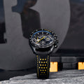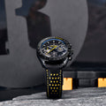 A pulseira do Pagani Design Prestige Horatio é cuidadosamente projetada com materiais premium, combinando a elegância do eco-couro. Proporciona um conforto incomparável e uma sensação única de estar usando um relógio quase imperceptível no pulso.