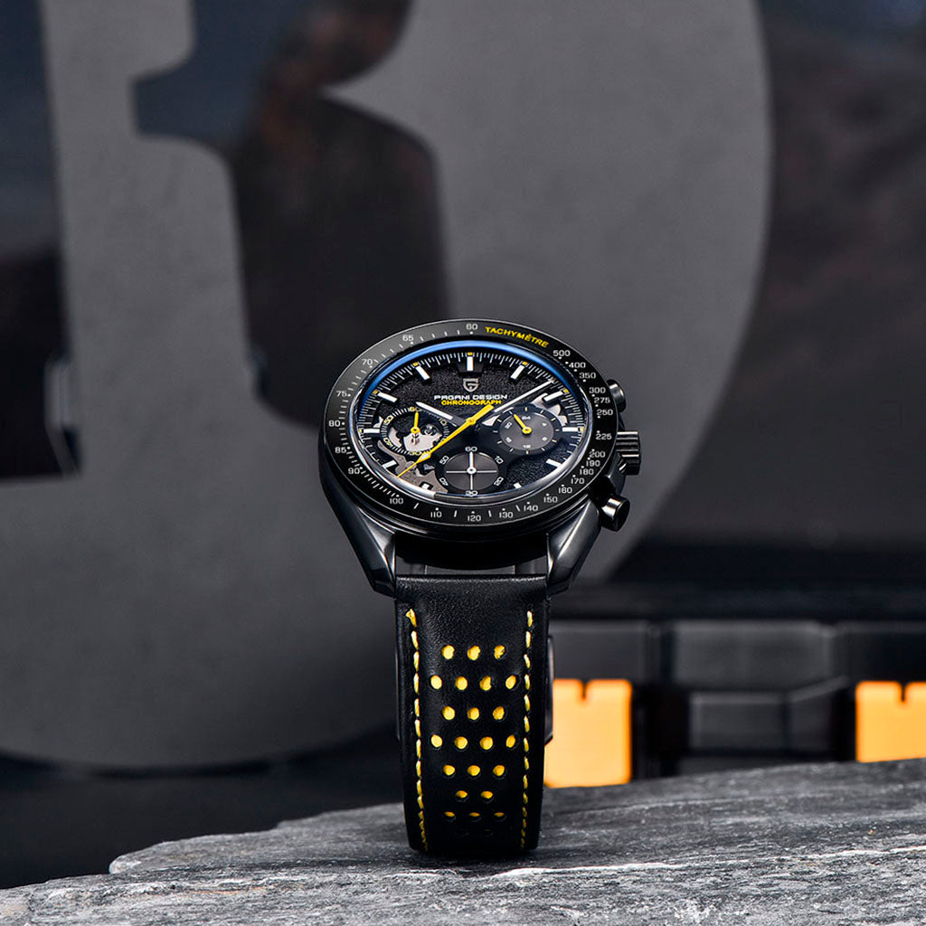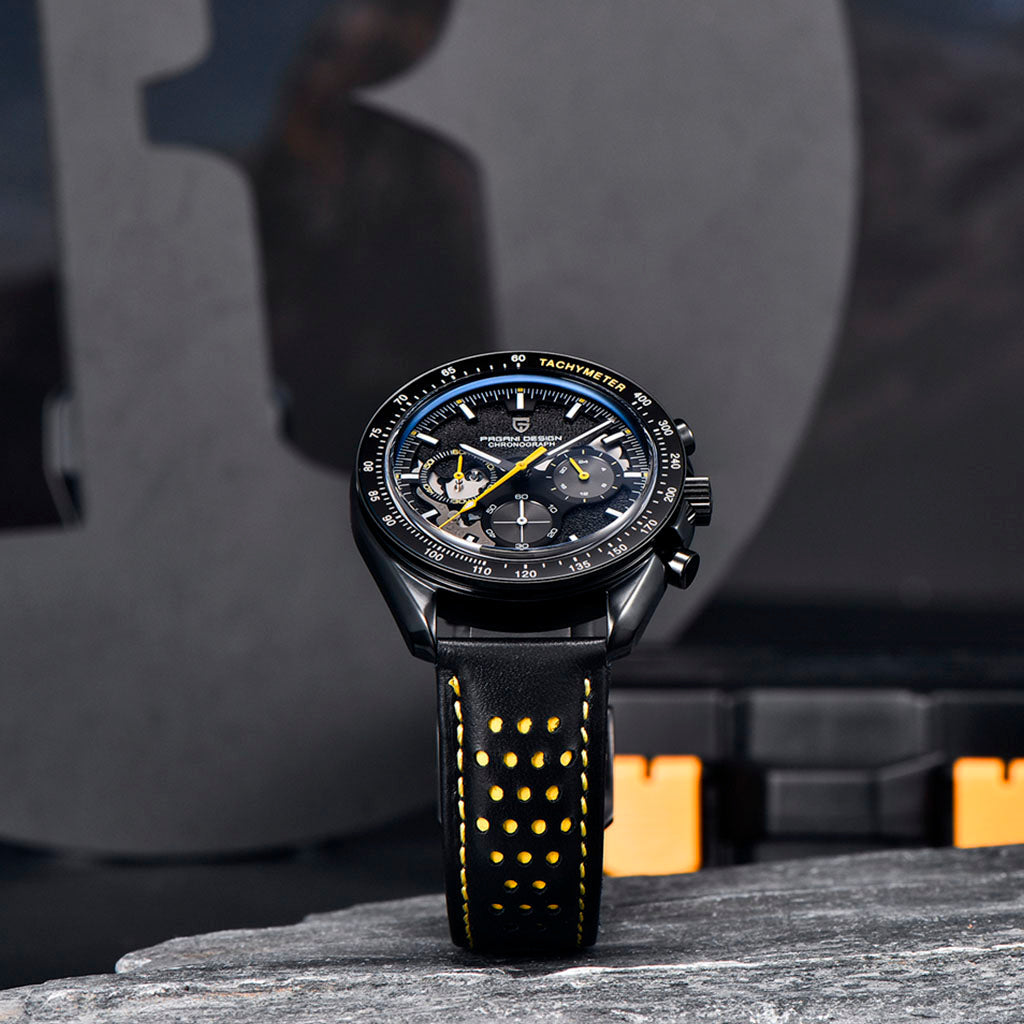 O mecanismo Seiko VK63 é um movimento de quartzo de alta precisão, conhecido por seu desempenho excepcional em termos de precisão e confiabilidade. O Pagani Design Prestige Horatio equipado com o movimento VK63, oferece uma precisão e confiabilidade excepcionais.