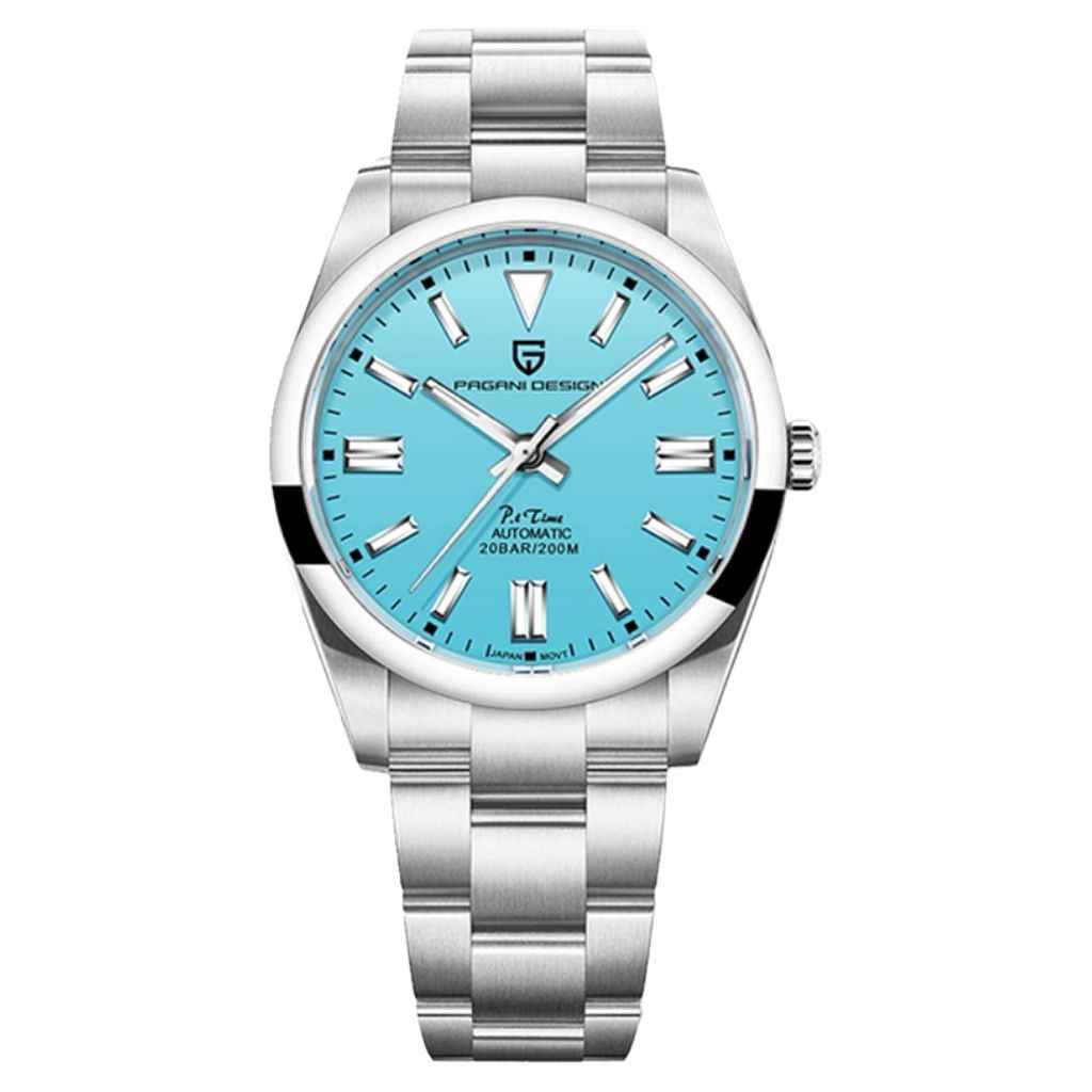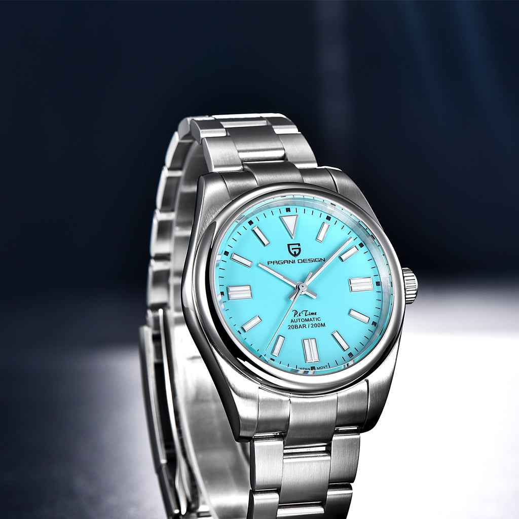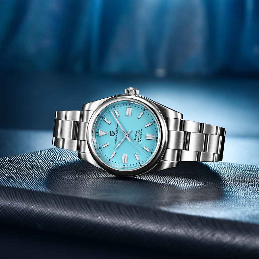 Die Uhr ist bis zu 200 Metern wasserdicht und bietet Sicherheit sowie Vertrauen bei Wasseraktivitäten. Die Krone der Pagani Design Arcanum ist verschraubt, um eine vollständige und sichere Abdichtung zu gewährleisten. Bitte beachten Sie die Bedienungsanleitung und Garantieinformationen.