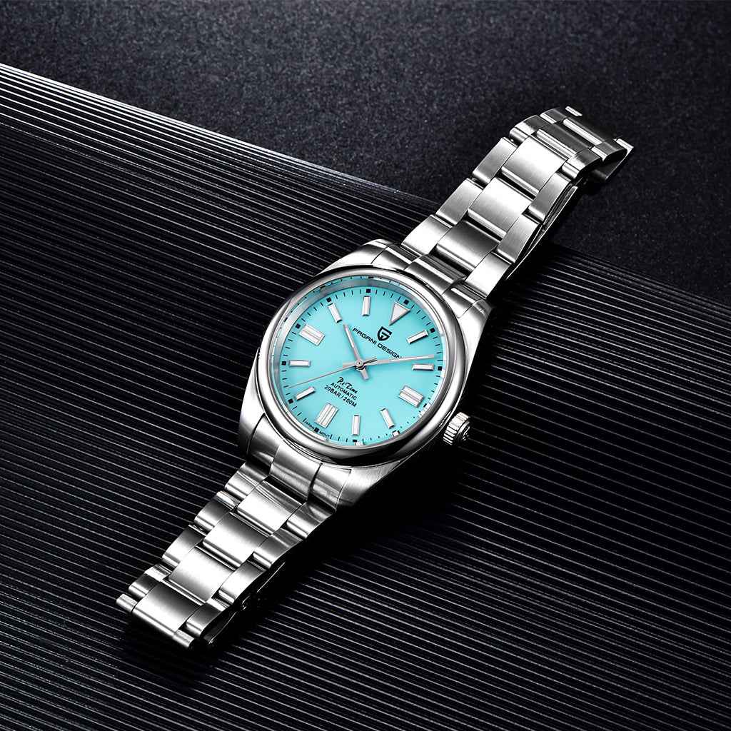 Das Armband der Pagani Design Arcanum ist sorgfältig aus Edelstahl 316L gefertigt, wodurch es die Widerstandsfähigkeit von Stahl mit der Leichtigkeit des Metalls vereint. Es bietet unvergleichlichen Komfort und das einzigartige Gefühl, eine fast schwerelose Uhr am Handgelenk zu tragen.