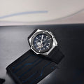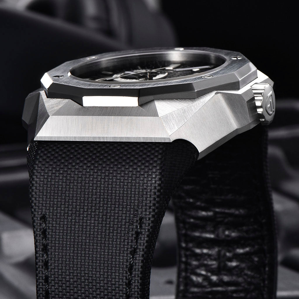 A pulseira do Pagani Design Armored Blue é cuidadosamente projetada com materiais premium, combinando a resistência e leveza do couro. Proporciona um conforto incomparável e uma sensação única de estar usando um relógio quase imperceptível no pulso.
