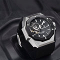O Pagani Design Armored Black é fabricado com aço inoxidável 316L, um material antialérgico e altamente resistente à corrosão, oferecendo resistência, brilho e durabilidade excepcionais.