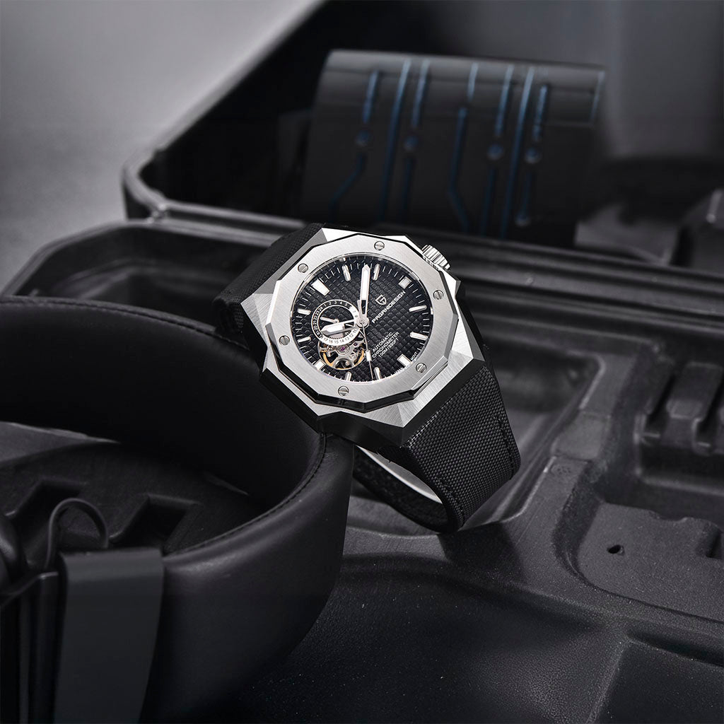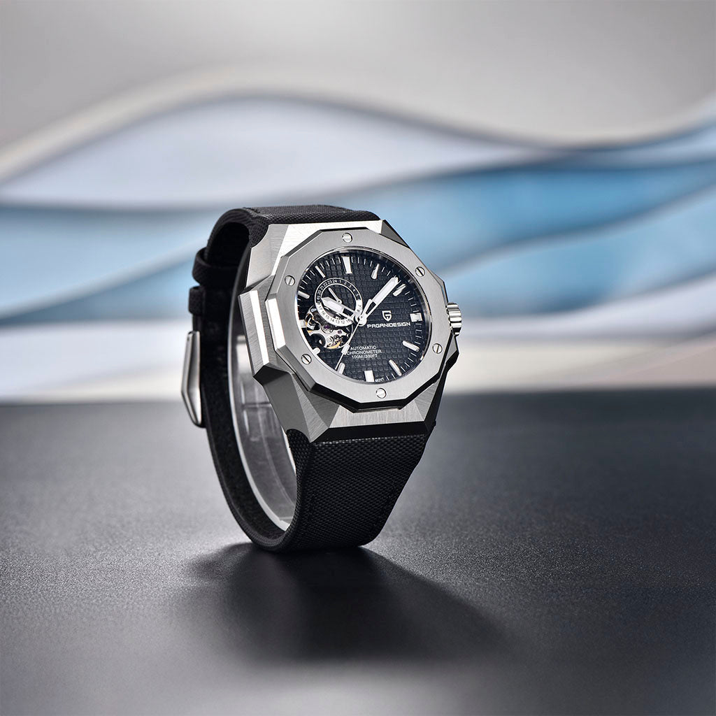 O movimento Seiko NH39 é uma versão aprimorada do Seiko NH39, conhecido por seu desempenho excepcional em termos de precisão e confiabilidade. O Pagani Design Armored Black and White equipado com o movimento NH39, possui uma impressionante reserva de marcha de aproximadamente 45 horas.