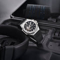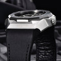 A pulseira do Pagani Design Armored Black and White é cuidadosamente projetada com materiais premium, combinando a resistência e leveza do couro. Proporciona um conforto incomparável e uma sensação única de estar usando um relógio quase imperceptível no pulso.