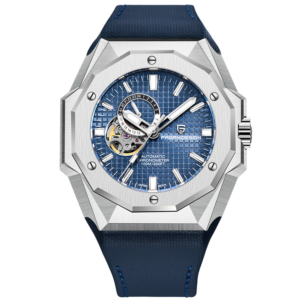 O movimento Seiko NH39 é uma versão aprimorada do Seiko NH39, conhecido por seu desempenho excepcional em termos de precisão e confiabilidade. O Pagani Design Armored Blue equipado com o movimento NH39, possui uma impressionante reserva de marcha de aproximadamente 45 horas.