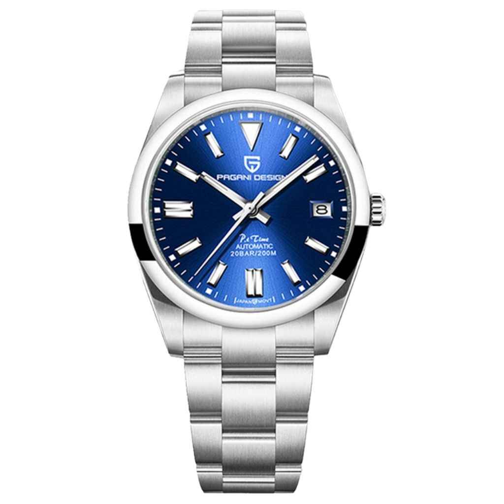 Das Seiko NH35A-Uhrwerk ist eine verbesserte Version des Seiko NH25A und bekannt für seine Präzision und Zuverlässigkeit. Die Pagani Design Astoria Blue, ausgestattet mit dem NH35A, verfügt über eine beeindruckende Gangreserve von ca. 45 Stunden.