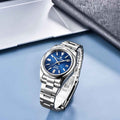 Das Armband der Pagani Design Astoria Blue wurde sorgfältig aus 316L-Edelstahl gefertigt und vereint Robustheit mit Leichtigkeit. Es sorgt für unvergleichlichen Komfort und das einzigartige Gefühl, eine fast schwerelose Uhr am Handgelenk zu tragen.