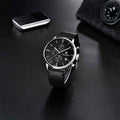 A pulseira do Pagani Design Aurelius Noir é cuidadosamente projetada com materiais premium, levando toda a elegância do eco-couro. Proporciona um conforto incomparável e uma sensação única de estar usando um relógio quase imperceptível no pulso.