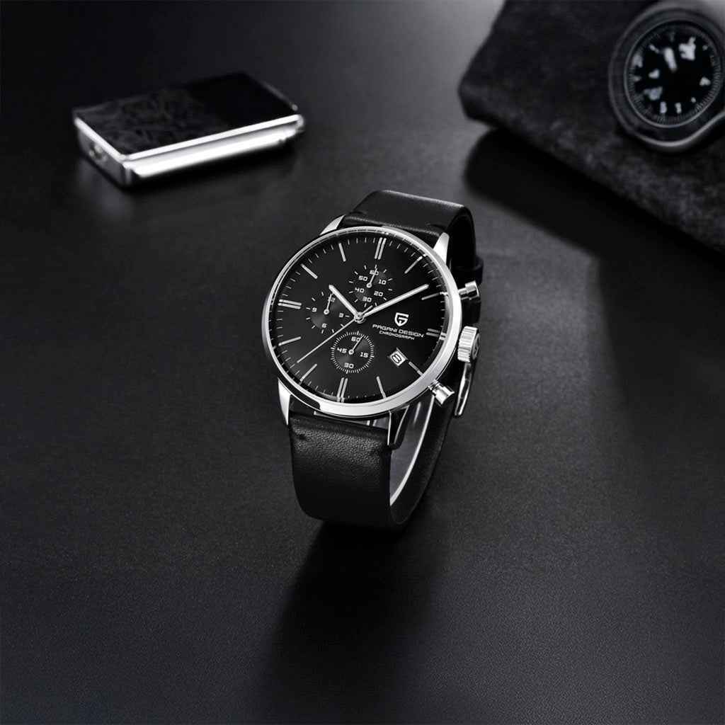 O mecanismo Seiko VK67 é um movimento de quartzo de alta precisão, conhecido por seu desempenho excepcional em termos de precisão e confiabilidade. O Pagani Design Aurelius Noir Edition equipado com o movimento VK67, oferece uma precisão e confiabilidade excepcionais.