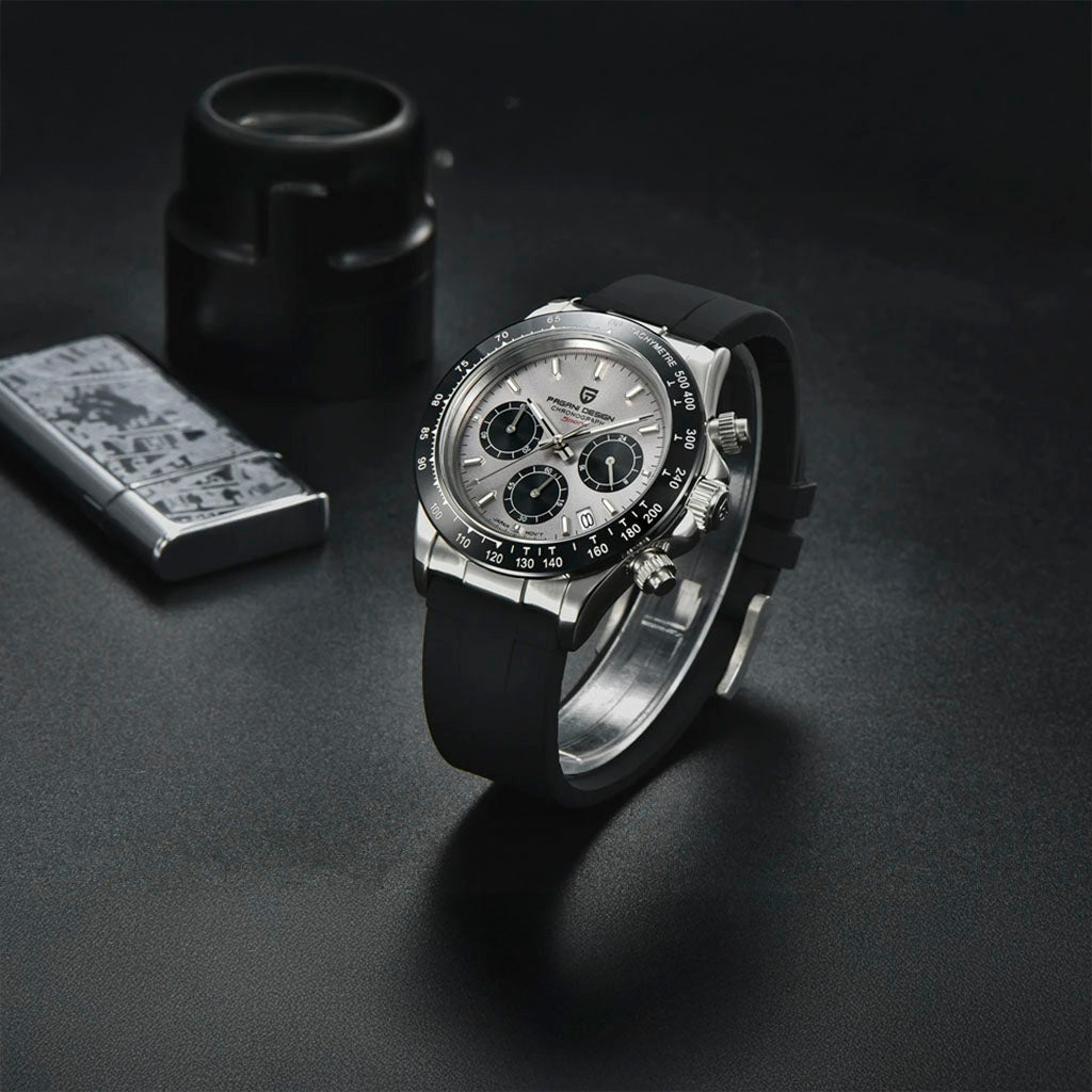 O movimento Seiko VK63 é conhecido por seu desempenho excepcional em termos de precisão e confiabilidade. O Pagani Design Barone Aurelius Sport black equipado com o movimento VK63, oferece isolamento e funcionalidade superiores.