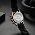 A pulseira do Pagani Design Barone Aurelius Sport black é projetada com materiais premium, com toda a resistência e leveza de borracha. Proporciona um conforto incomparável e uma sensação única de estar usando um relógio quase imperceptível no pulso.