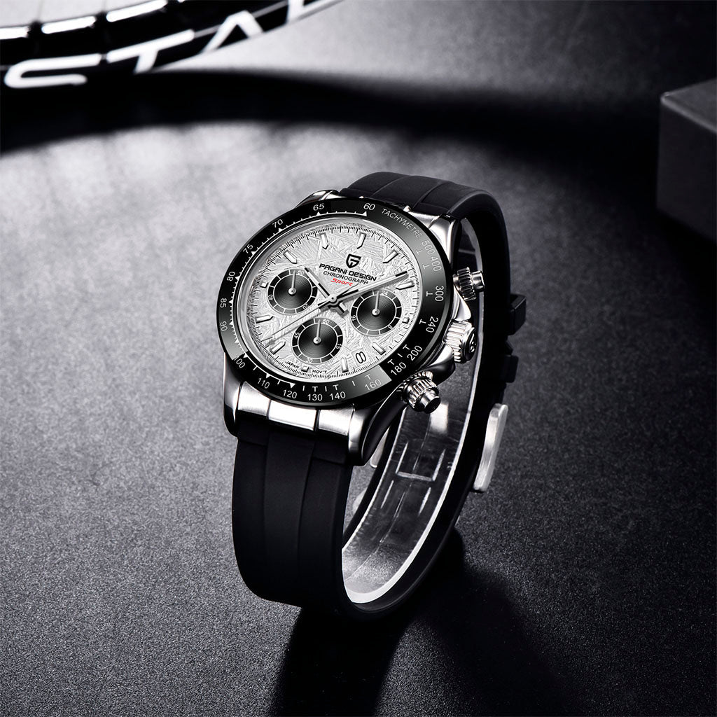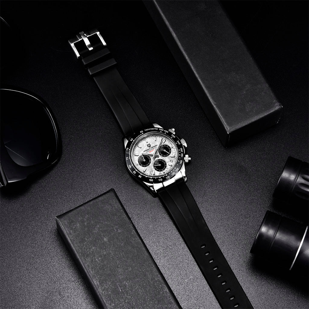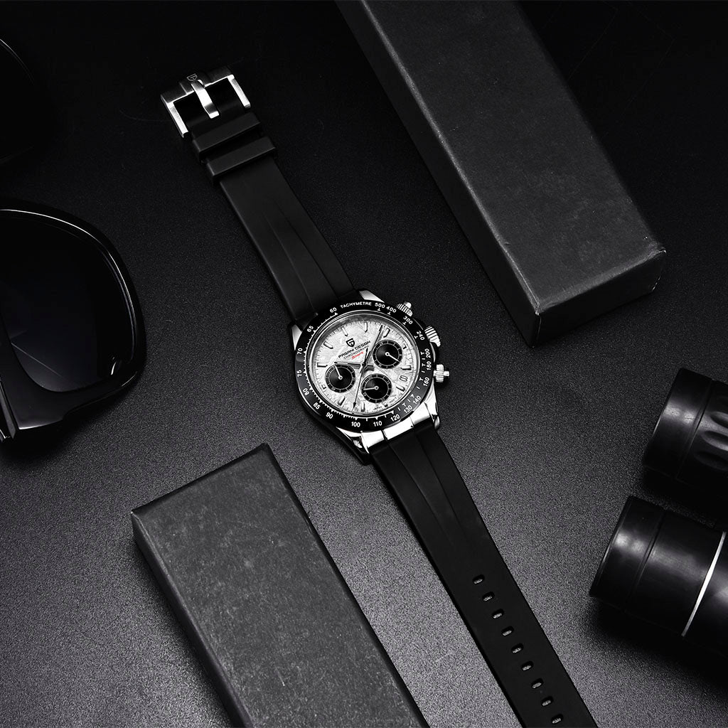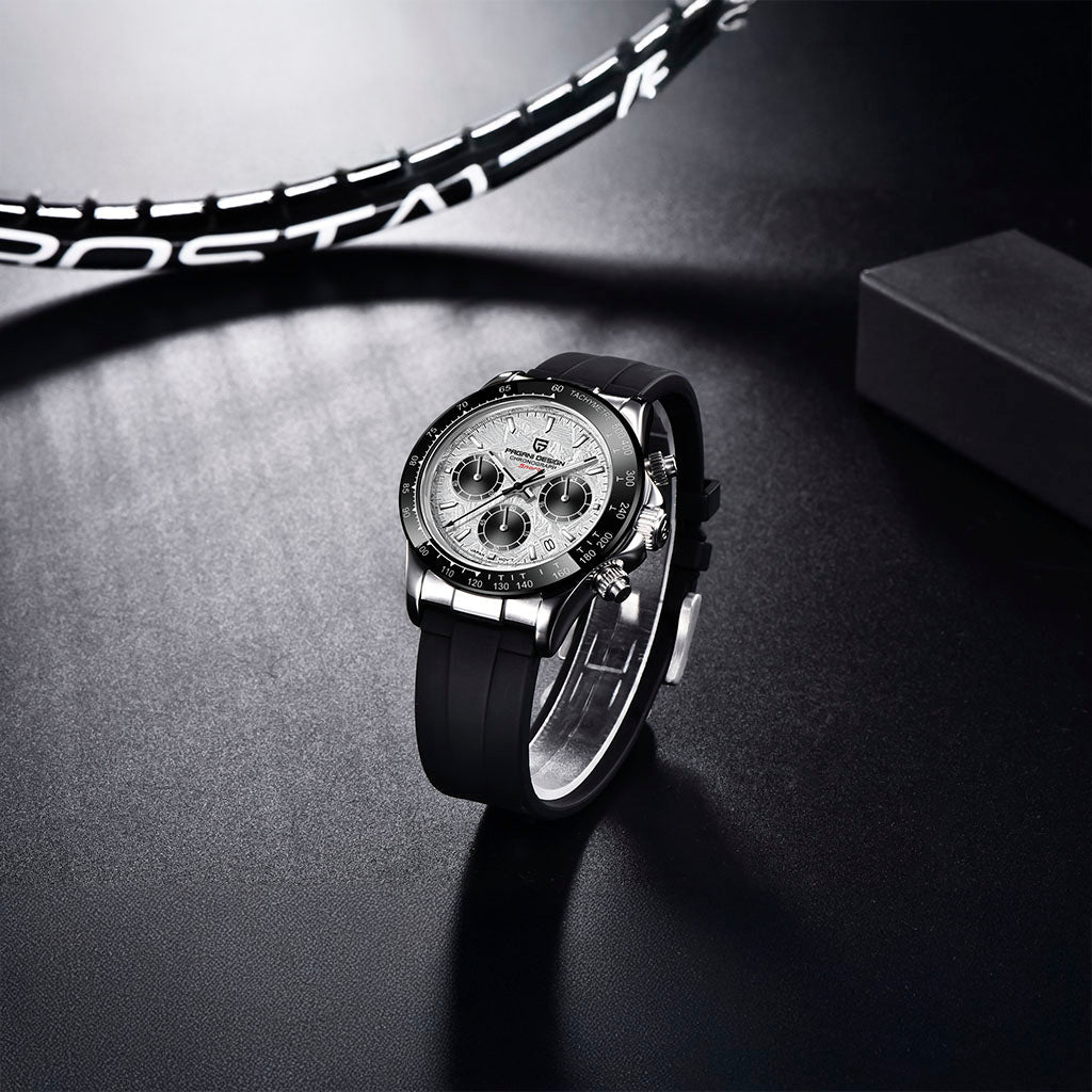 A pulseira do Pagani Design Barone Classic white é projetada com materiais premium, com toda a resistência e leveza de borracha. Proporciona um conforto incomparável e uma sensação única de estar usando um relógio quase imperceptível no pulso.