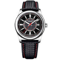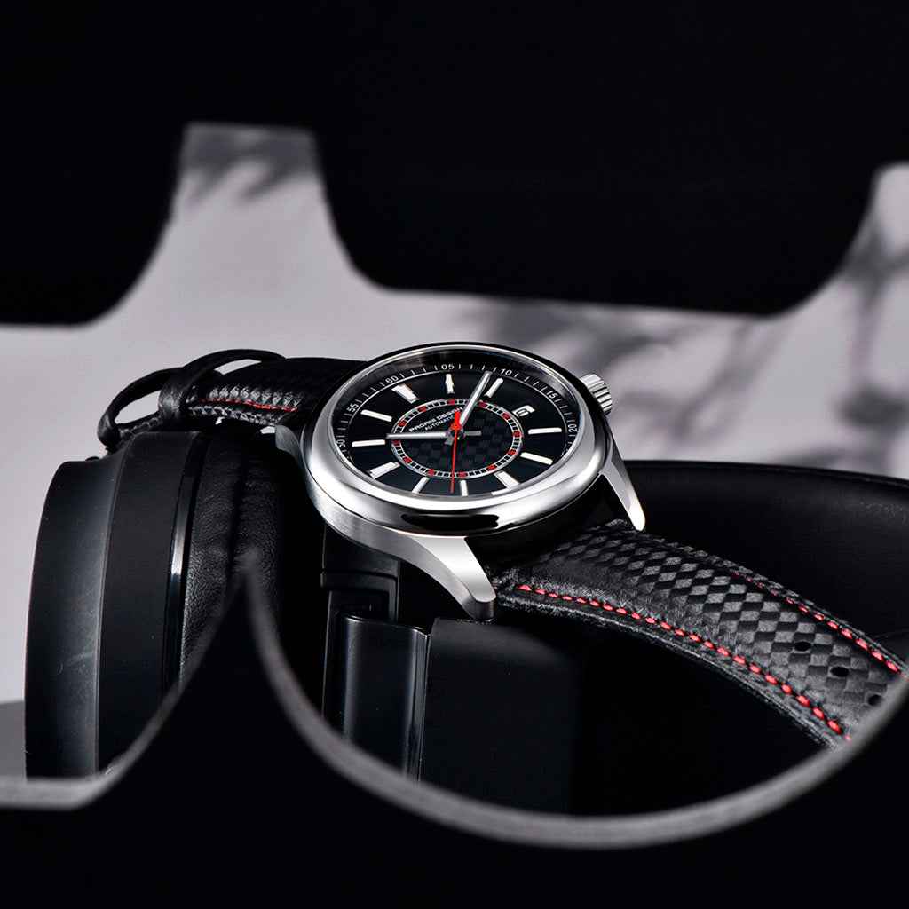 A pulseira do Pagani Design Birmingham Noir é cuidadosamente projetada com materiais premium, combinando a resistência do nylon e a leveza da borracha. Proporciona um conforto incomparável e uma sensação única de estar usando um relógio quase imperceptível no pulso.