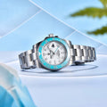 A pulseira doPagani Design Carpe Noctem é cuidadosamente projetada com aço inoxidável 316L, combinando a resistência do aço e a leveza do material. Proporciona um conforto incomparável e uma sensação única de estar usando um relógio quase imperceptível no pulso.