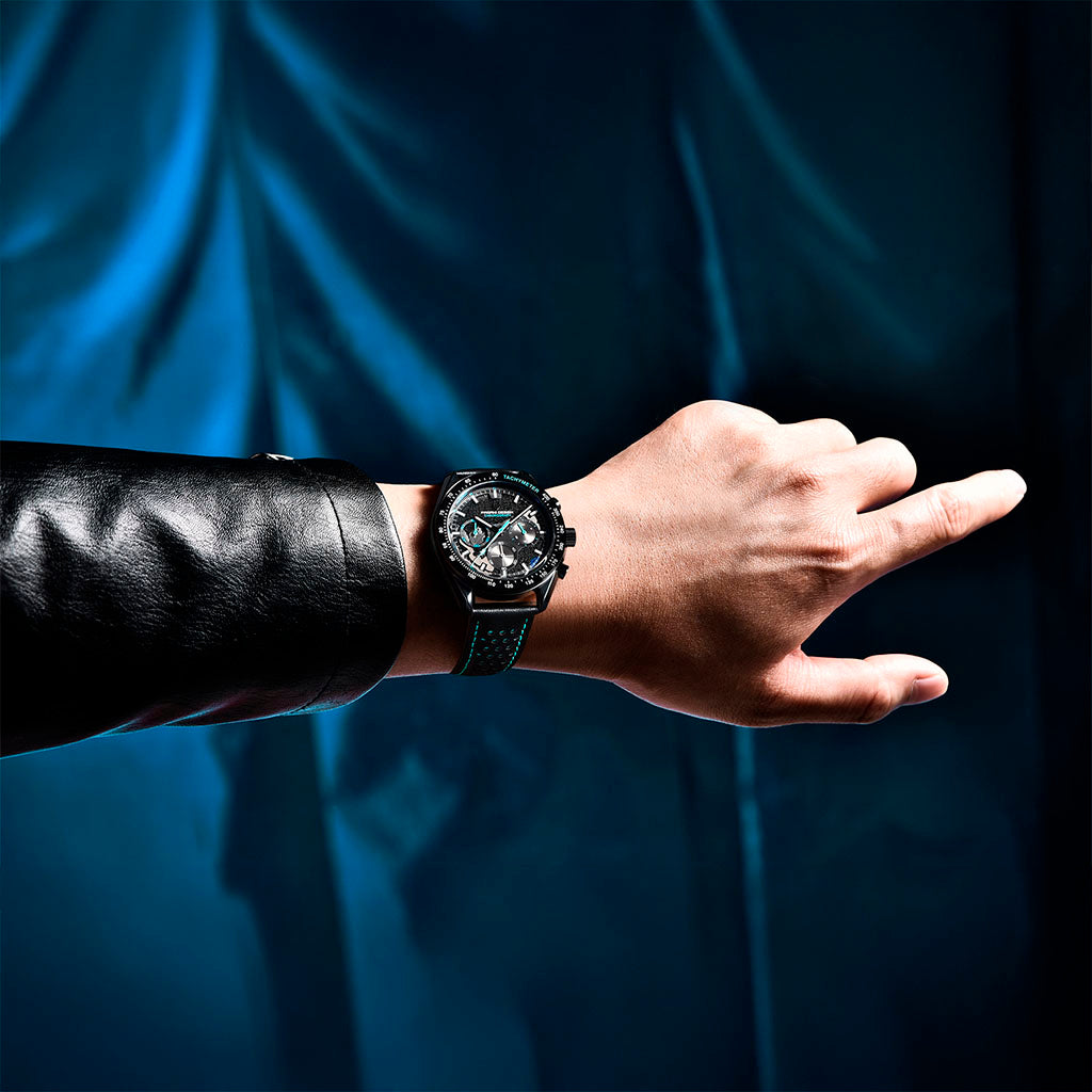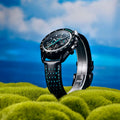 A pulseira do Pagani Design Castellan Aureo é cuidadosamente projetada com materiais premium, combinando a elegância do eco-couro. Proporciona um conforto incomparável e uma sensação única de estar usando um relógio quase imperceptível no pulso.