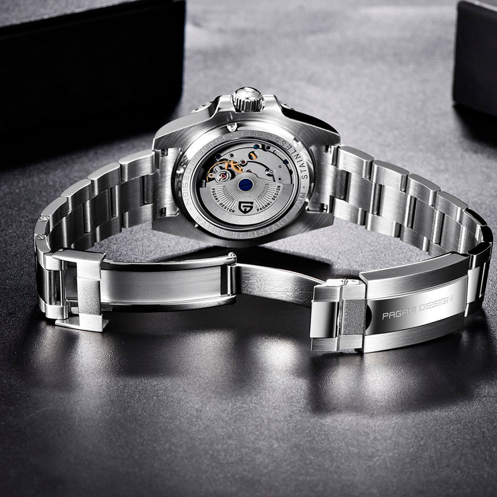 A pulseira do Pagani Design Constella Primum é cuidadosamente projetada com aço inoxidável 316L, combinando a resistência do aço e a leveza do material. Proporciona um conforto incomparável e uma sensação única de estar usando um relógio quase imperceptível no pulso.