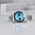 Das Armband der Pagani Design Dash Cyanite ist sorgfältig aus hochwertigen Materialien gefertigt und kombiniert die Widerstandsfähigkeit und Leichtigkeit von 316L-Edelstahl. Es bietet unvergleichlichen Tragekomfort und das einzigartige Gefühl, fast keine Uhr am Handgelenk zu tragen.