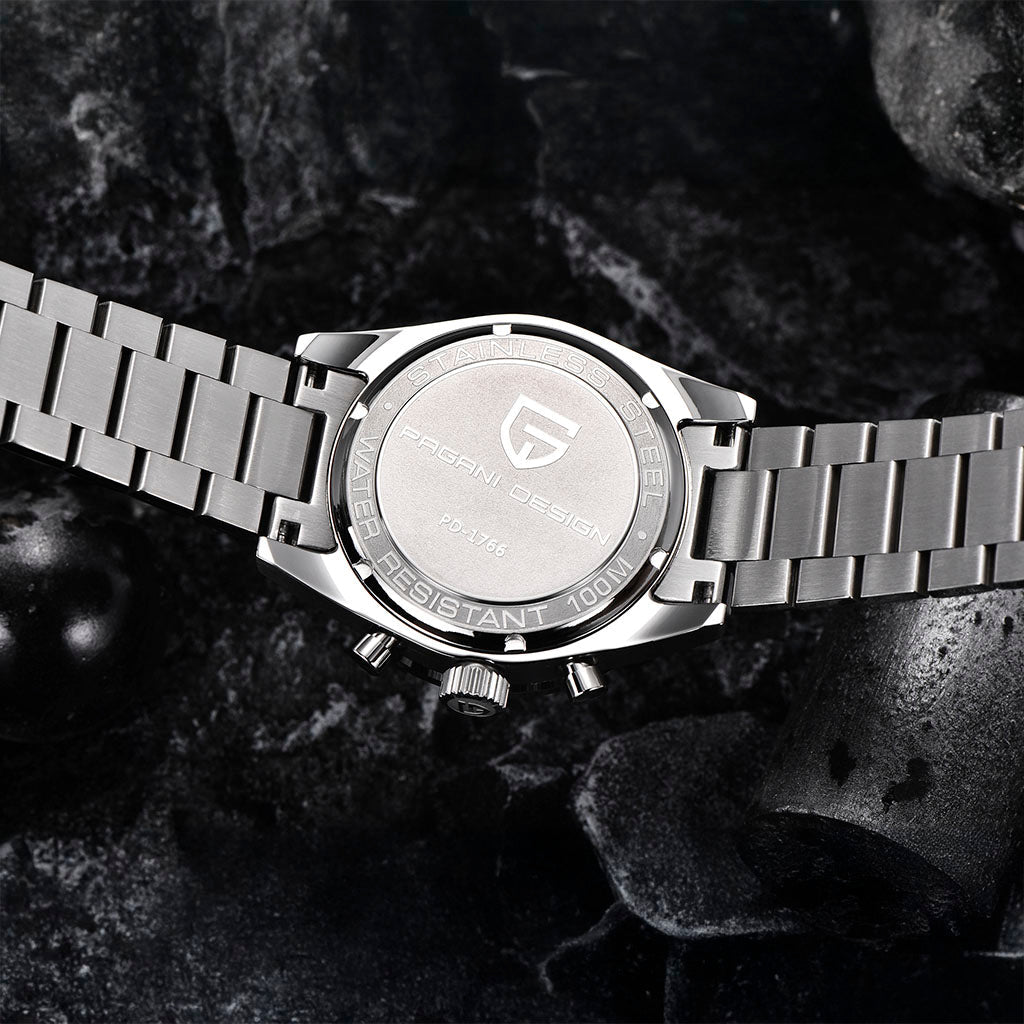 Die Pagani Design Drive Viridis wird aus 316L-Edelstahl gefertigt – hypoallergen, korrosionsbeständig und von zeitloser Eleganz. Ein Material, das Widerstandskraft, Glanz und Langlebigkeit auf höchstem Niveau bietet.