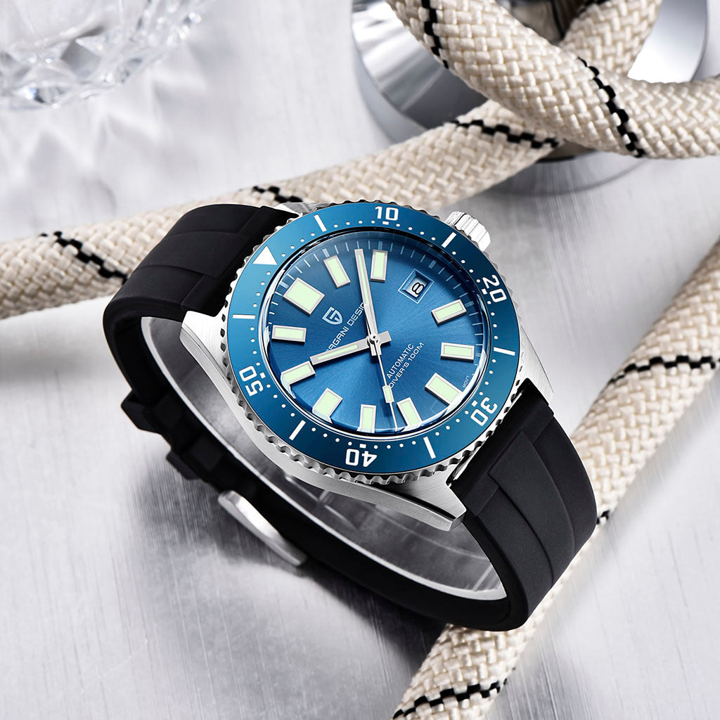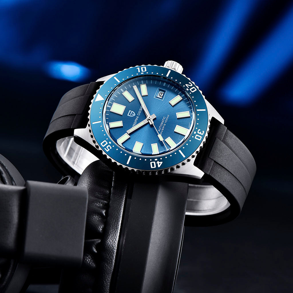 Das Seiko NH35-Uhrwerk ist eine verfeinerte Version des NH25 und bekannt für herausragende Präzision und Zuverlässigkeit. Der Pagani Design Falkenberg, ausgestattet mit dem Kaliber NH35, bietet eine beeindruckende Gangreserve von ca. 45 Stunden.