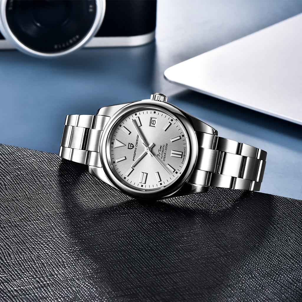 Das Seiko NH35A-Uhrwerk ist eine verbesserte Version des Seiko NH25A und bekannt für seine Präzision und Zuverlässigkeit. Die Pagani Design Firenze, ausgestattet mit dem NH35A, verfügt über eine beeindruckende Gangreserve von ca. 45 Stunden.