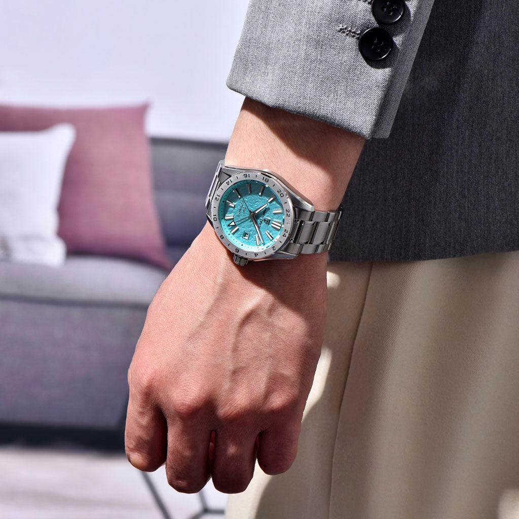 A pulseira do Pagani Design Fortress Light Blue é cuidadosamente projetada com aço inoxidável 316L, combinando a resistência do aço e a leveza do material. Proporciona um conforto incomparável e uma sensação única de estar usando um relógio quase imperceptível no pulso.