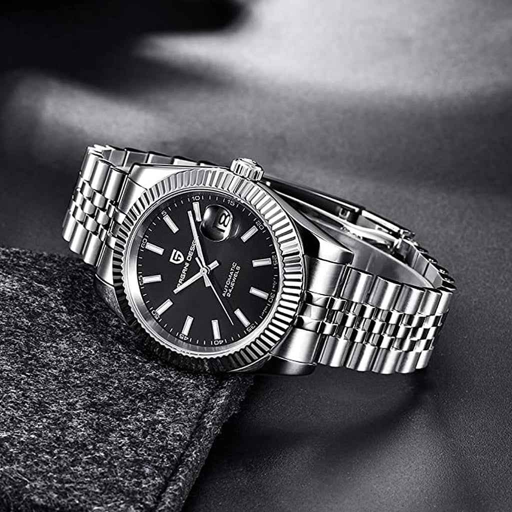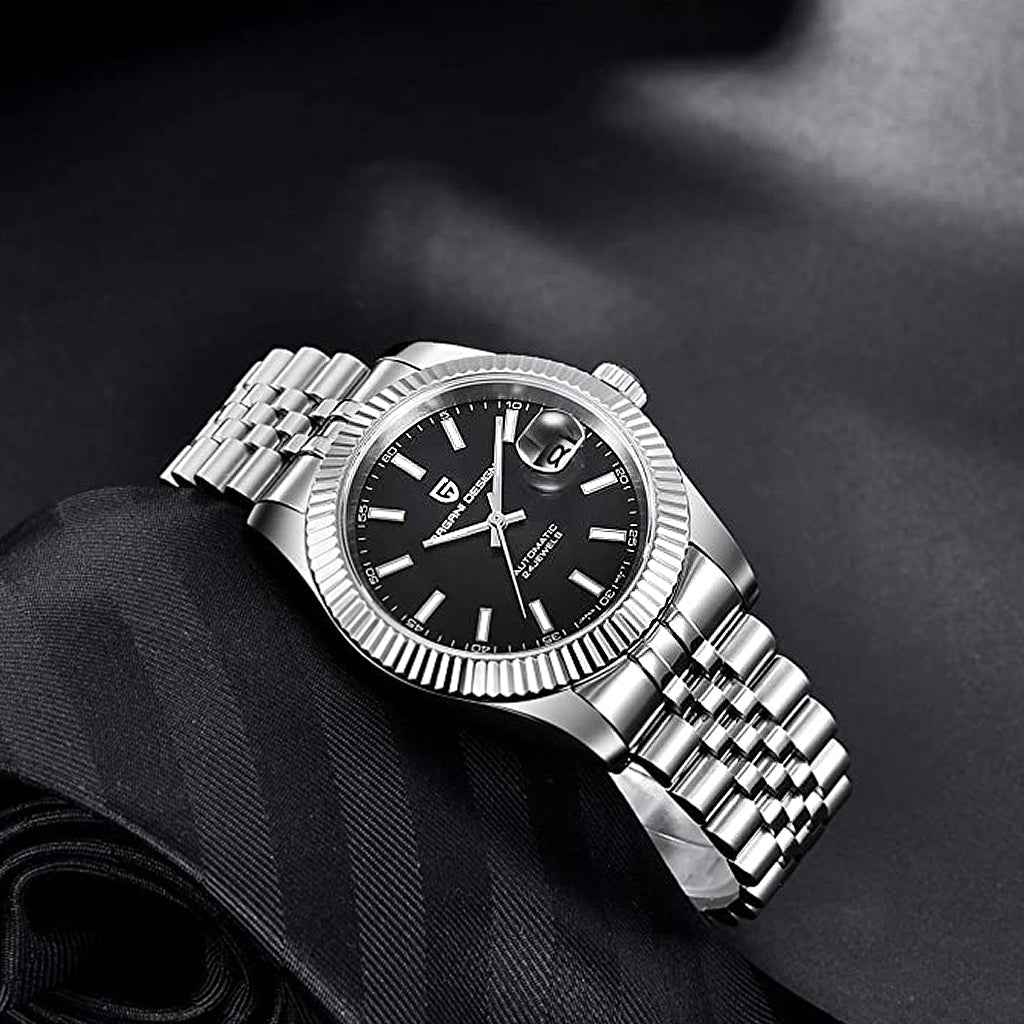 O relógio utiliza o movimento Seiko NH35A, uma versão aprimorada do Seiko NH25, conhecido por seu desempenho excepcional em termos de precisão e confiabilidade. O Pagani Design Giovanni Black, equipado com o movimento NH35A, possui uma impressionante reserva de marcha de aproximadamente 45 horas.