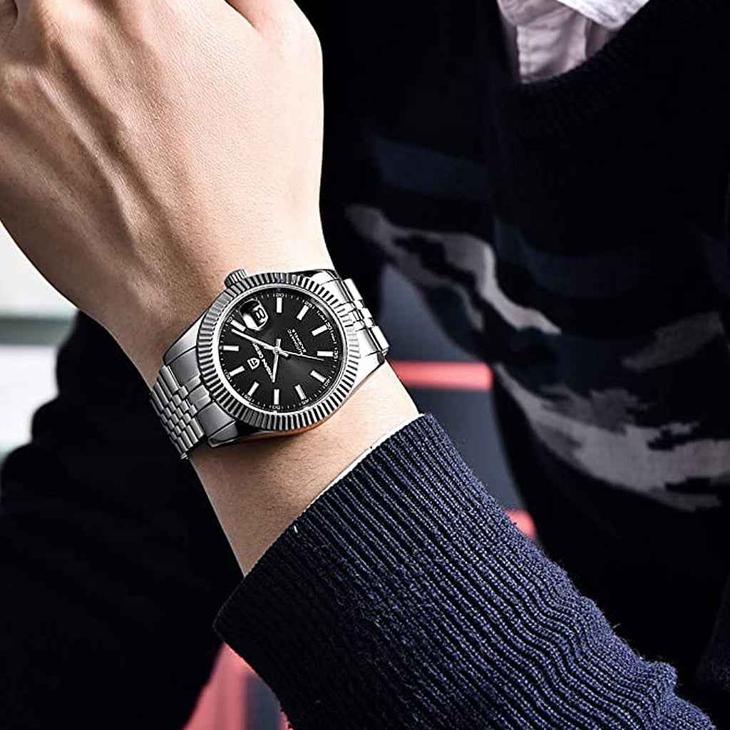 O Pagani Design Giovanni Black é suave no pulso e grandioso no olhar. A pulseira é feita de aço inoxidável, proporcionando um conforto incomparável e uma sensação única de estar usando um relógio quase imperceptível no pulso.
