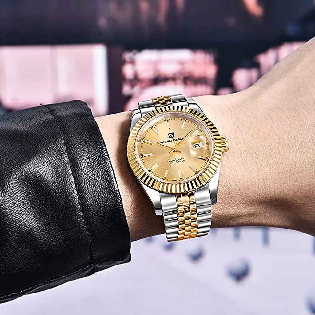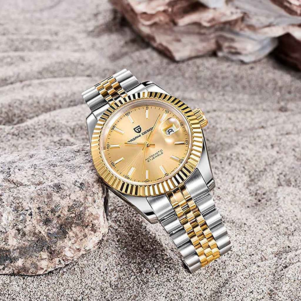 O relógio utiliza o movimento Seiko NH35A, uma versão aprimorada do Seiko NH25, conhecido por seu desempenho excepcional em termos de precisão e confiabilidade. O Pagani Design Giovanni Gold, equipado com o movimento NH35A, possui uma impressionante reserva de marcha de aproximadamente 45 horas.