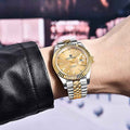 O Pagani Design Giovanni Gold é suave no pulso e grandioso no olhar. A pulseira é feita de aço inoxidável, proporcionando um conforto incomparável e uma sensação única de estar usando um relógio quase imperceptível no pulso.