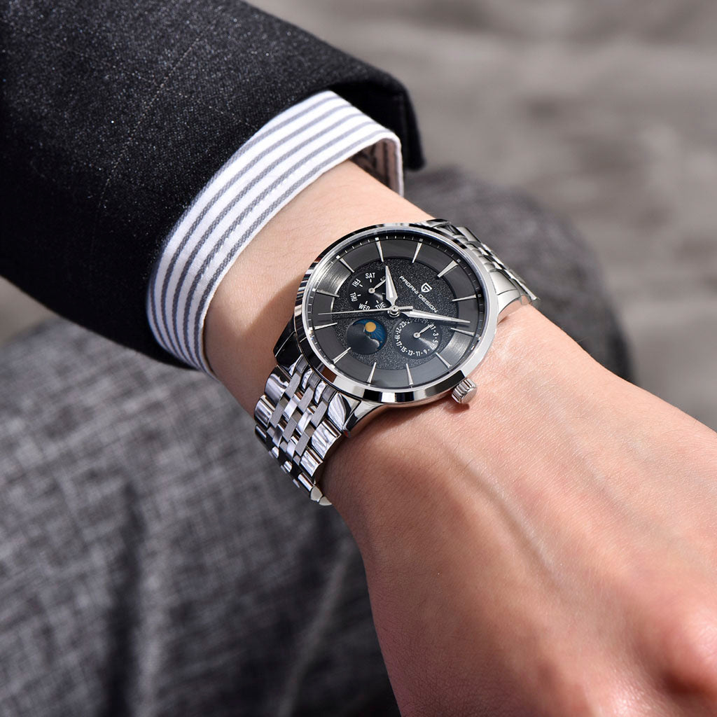 Das Armband des Pagani Design Goldstadt ist sorgfältig aus Edelstahl 316L gefertigt, das Stärke und Leichtigkeit harmonisch verbindet. Es bietet unvergleichlichen Tragekomfort und das Gefühl, eine Uhr zu tragen, die am Handgelenk kaum spürbar ist.