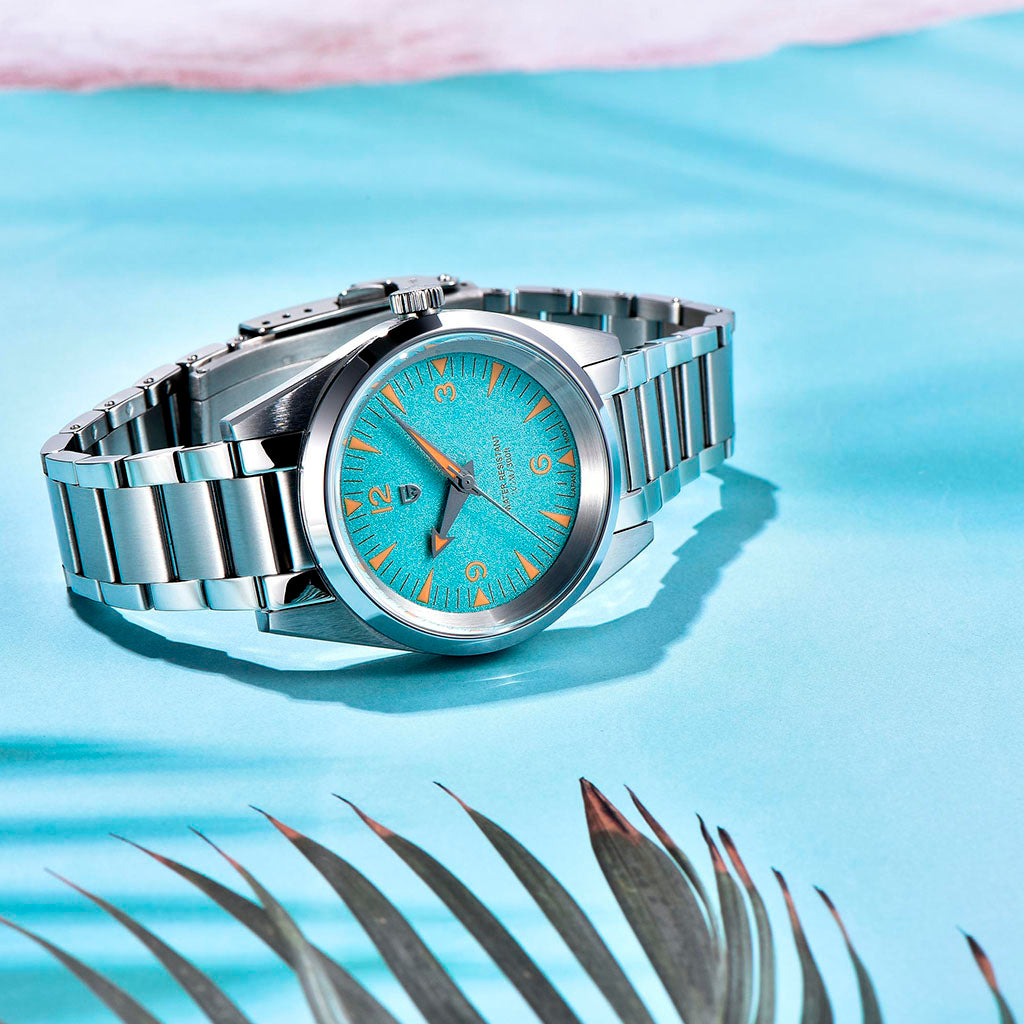 Das Armband der Pagani Design Hochberg ist sorgfältig aus hochwertigem 316L-Edelstahl gefertigt und vereint Eleganz mit Widerstandskraft. Es sorgt für unvergleichlichen Komfort und das Gefühl, fast keine Uhr am Handgelenk zu tragen.