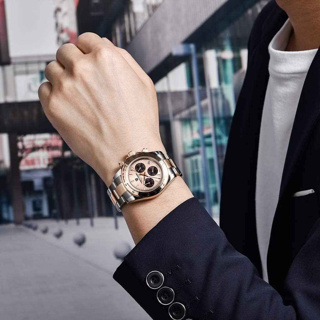 Das Seiko VK63-Werk ist bekannt für seine außergewöhnliche Präzision und Zuverlässigkeit. Die Pagani Design Imperium, ausgestattet mit diesem Uhrwerk, bietet überlegene Genauigkeit und Funktionalität.