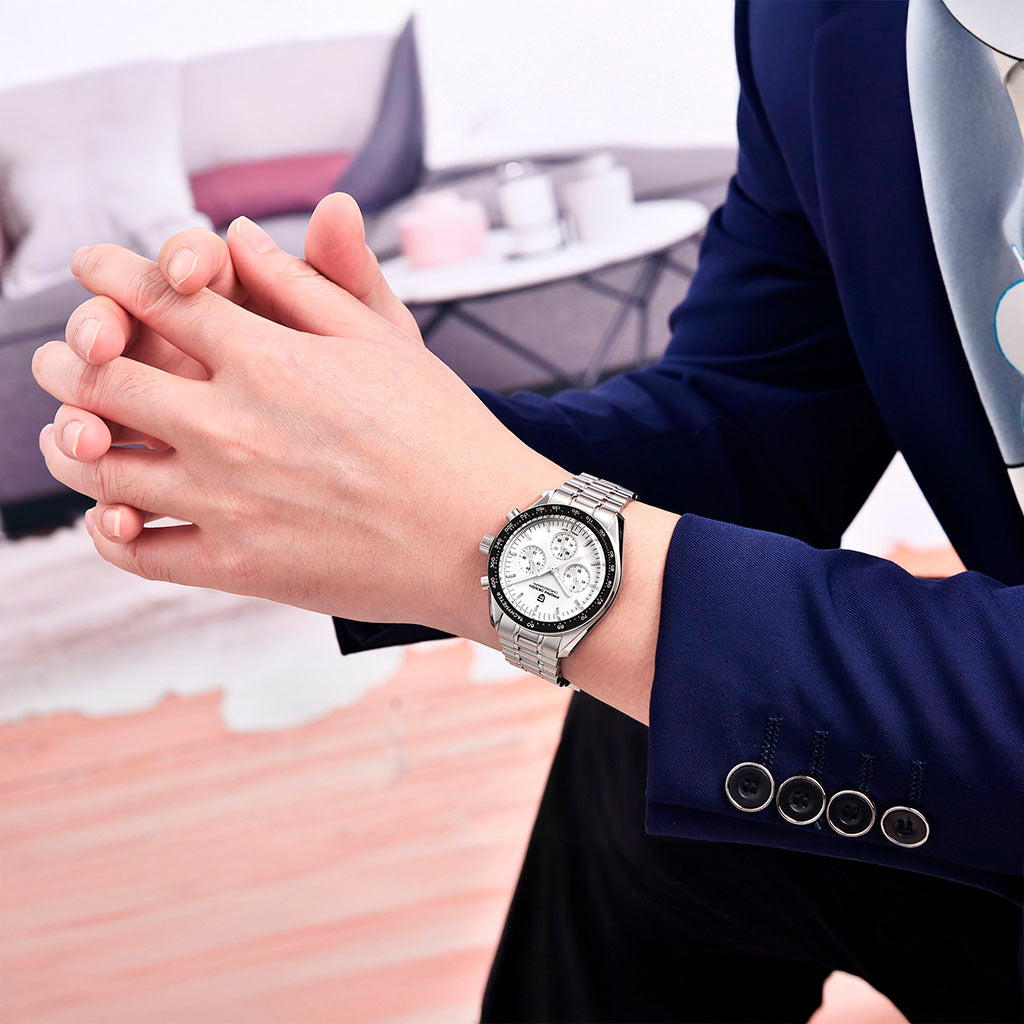 A pulseira do Pagani Design Imperium Solis é cuidadosamente projetada com materiais premium, combinando a resistência e leveza do aço inoxidável 316L. Proporciona um conforto incomparável e uma sensação única de estar usando um relógio quase imperceptível no pulso.