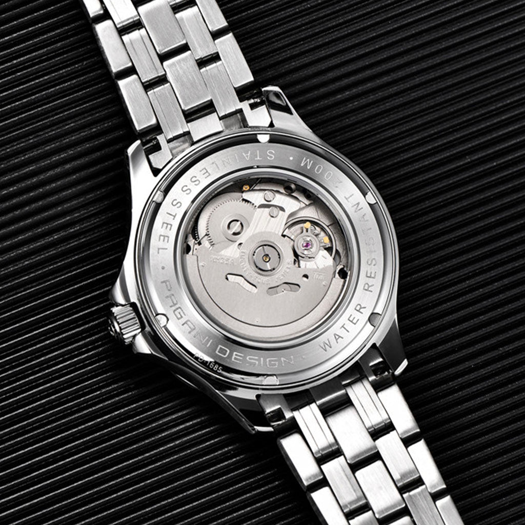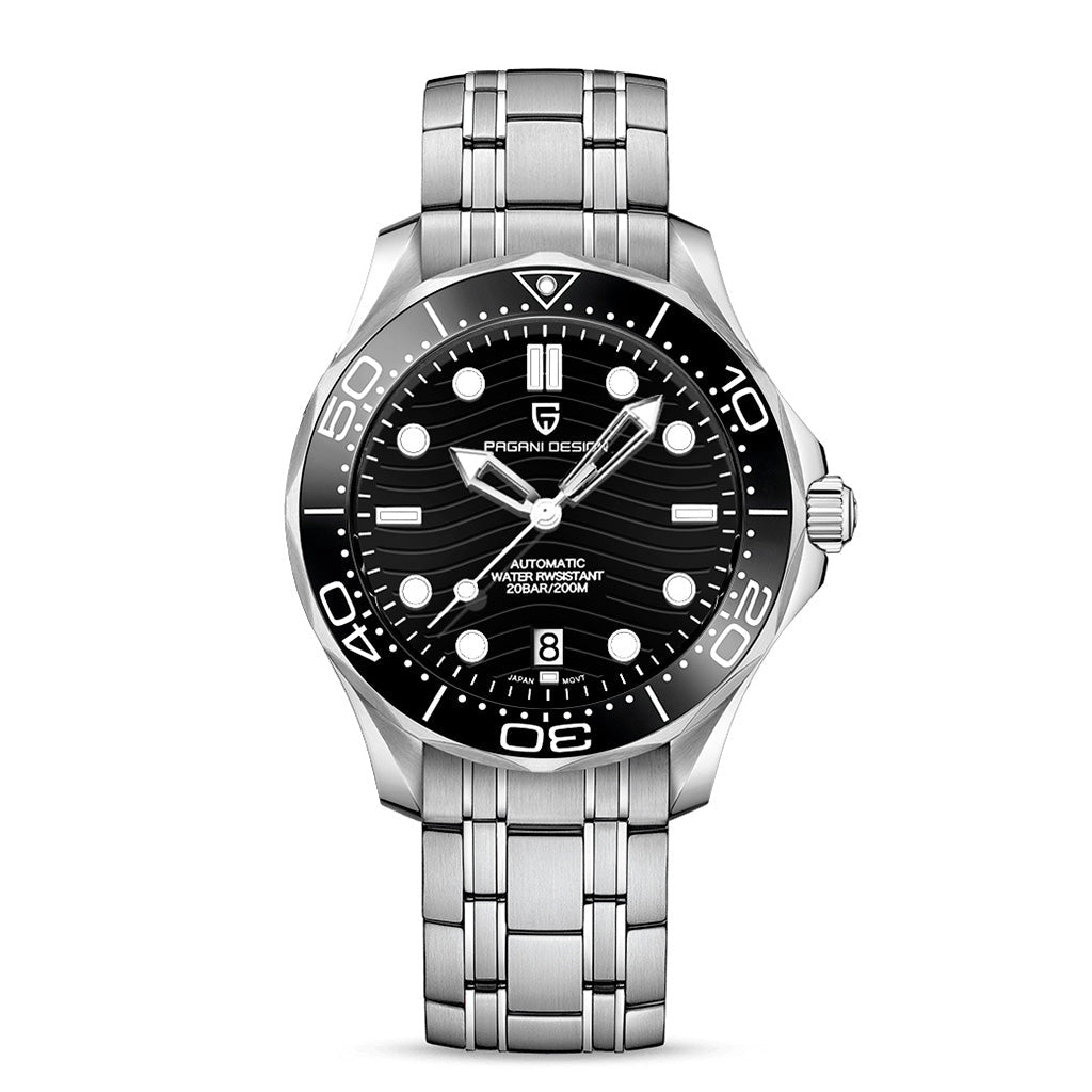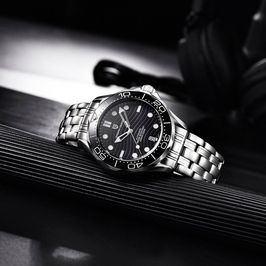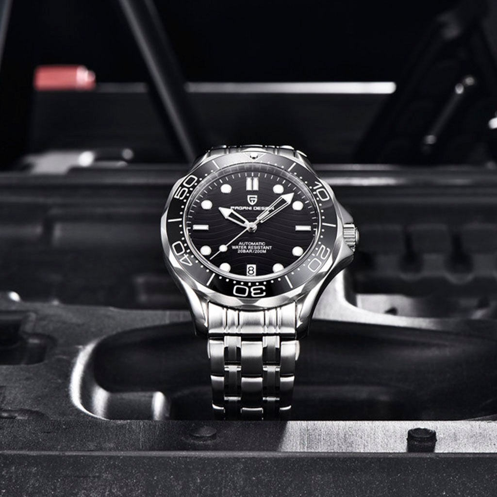 Die Uhr ist bis zu 200 Metern wasserdicht und bietet absolute Sicherheit und Gelassenheit bei sämtlichen Wasseraktivitäten. Das exklusive Dichtungssystem von Pagani Design sorgt für ein hermetisch abgeschlossenes Gehäuse und schützt das Werk zuverlässig vor Wasser und äußeren Einflüssen.
