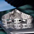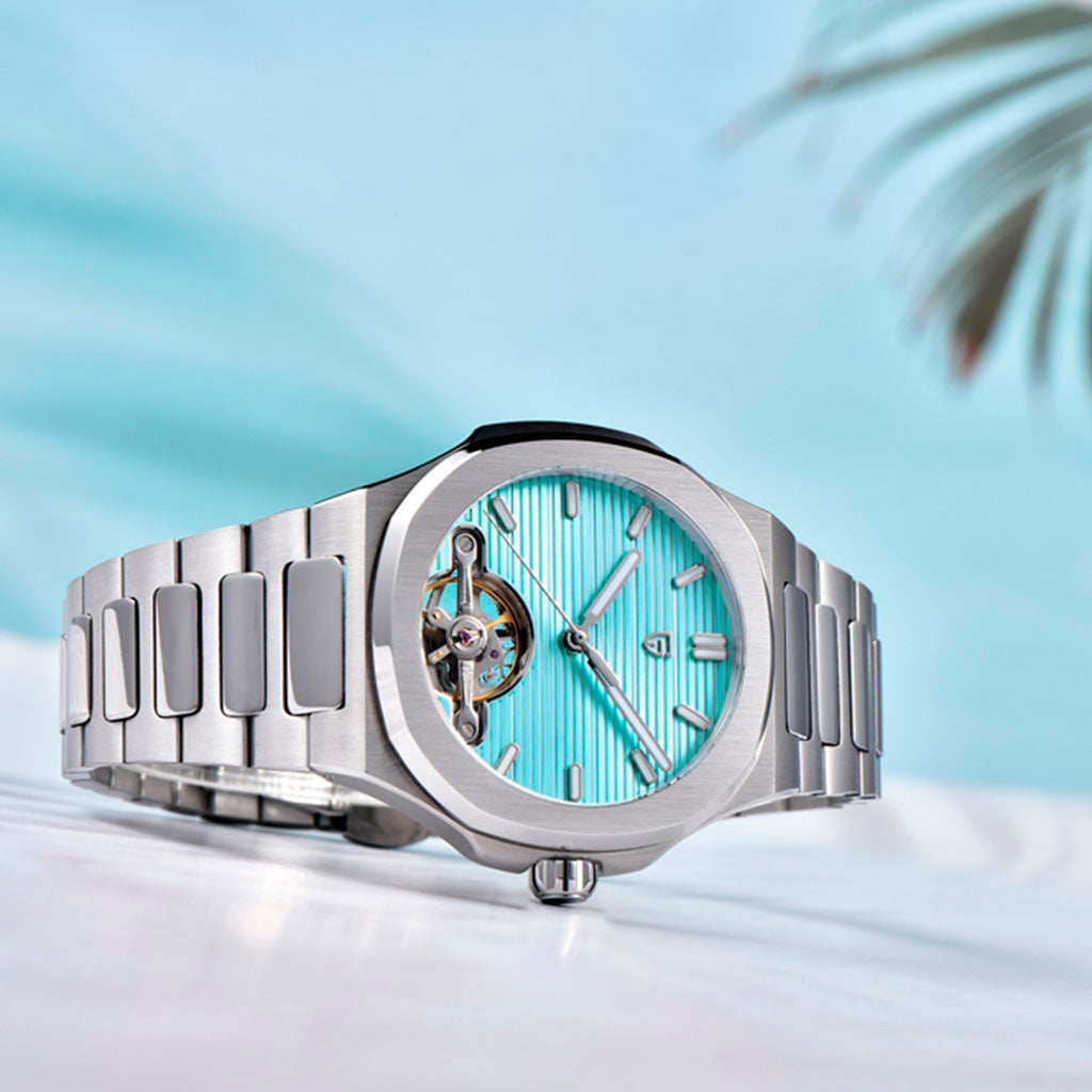 Das Armband des Pagani Design Kaiserhof Prestige ist aus hochwertigem 316L-Edelstahl gefertigt und vereint Stärke mit Leichtigkeit. Es bietet unvergleichlichen Tragekomfort und das exklusive Gefühl, eine Uhr zu tragen, die kaum am Handgelenk spürbar ist.