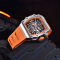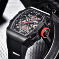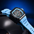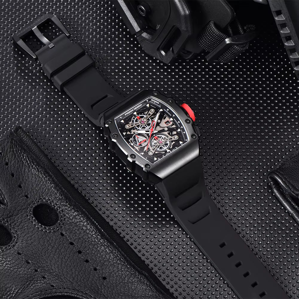 Das Armband der Pagani Design Kratos Black ist aus hochwertigem FKM-Gummi gefertigt, das widerstandsfähig und zugleich angenehm leicht ist. Es bietet unvergleichlichen Tragekomfort und das Gefühl, eine nahezu schwerelose Uhr am Handgelenk zu tragen.