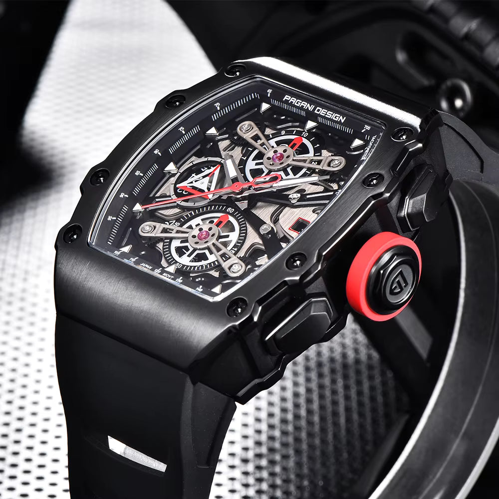 Erwerben Sie Ihre Pagani Design Kratos Black auf unserer Website und erhalten Sie unsere exklusive Verpackung. Diese Uhr ist die perfekte Wahl für alle, die Qualität, Stil und Funktionalität suchen. Investieren Sie in die Pagani Design Kratos Black und erleben Sie Exzellenz in jedem Detail.