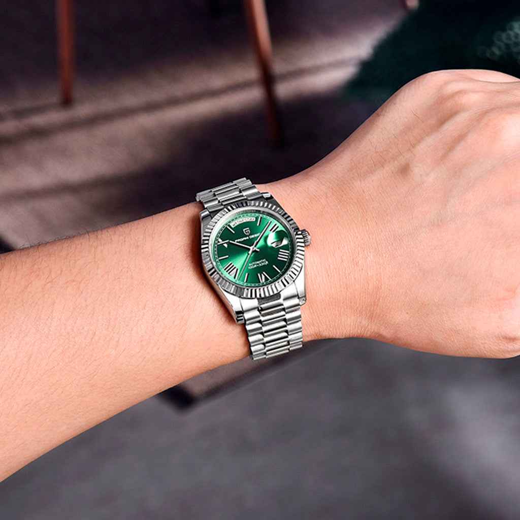 Bestellen Sie die Pagani Design London Duo Verde Rosé in unserem Shop und erhalten Sie sie in der exklusiven Pagani Design Verpackung. Diese Uhr ist die perfekte Wahl für Kenner, die Qualität und Raffinesse schätzen. Investieren Sie in die Pagani Design London Duo Verde Rosé und erleben Sie Exzellenz bis ins kleinste Detail.