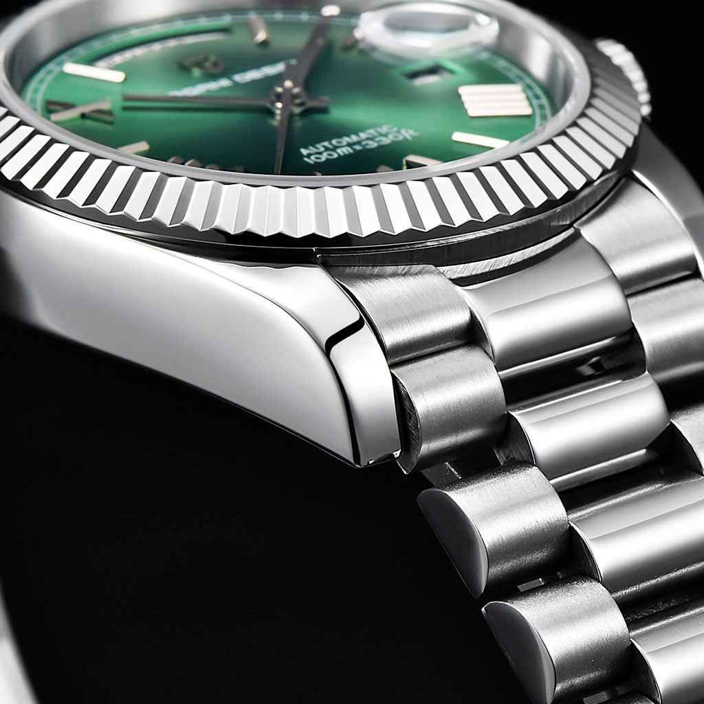 Das Seiko NH35A ist eine verfeinerte Weiterentwicklung des Seiko NH25, bekannt für seine Präzision und Zuverlässigkeit. Mit diesem Kaliber ausgestattet, verfügt die Pagani Design London Duo Verde Rosé über eine beeindruckende Gangreserve von etwa 45 Stunden.