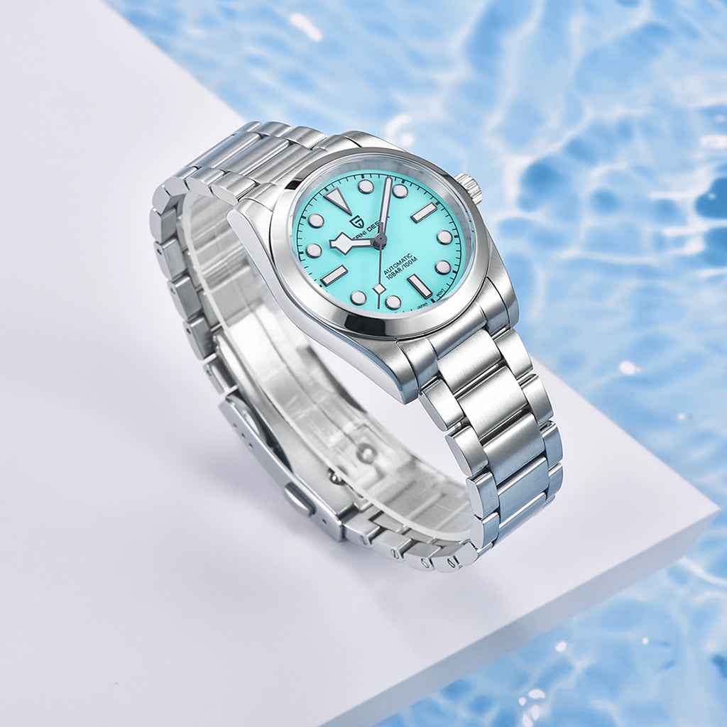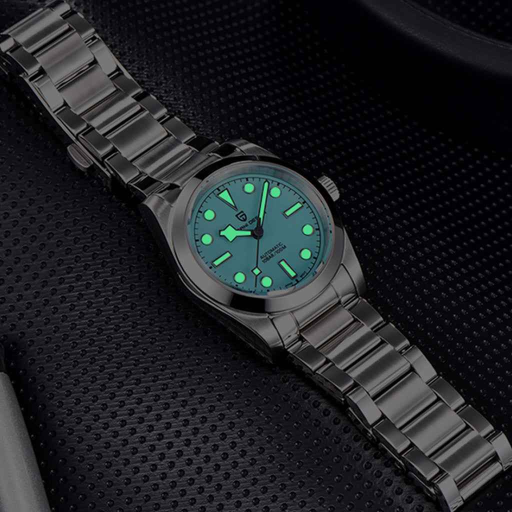 Das Seiko NH35A Uhrwerk ist bekannt für seine außergewöhnliche Präzision und Zuverlässigkeit. Die Pagani Design Magnus Mint mit diesem Kaliber bietet eine beeindruckende Gangreserve von ca. 48 Stunden.