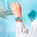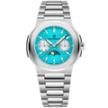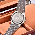 A pulseira do Pagani Design Magnus Blue é cuidadosamente projetada com materiais premium, combinando a resistência e leveza do aço inoxidável 316L. Proporciona um conforto incomparável e uma sensação única de estar usando um relógio quase imperceptível no pulso.