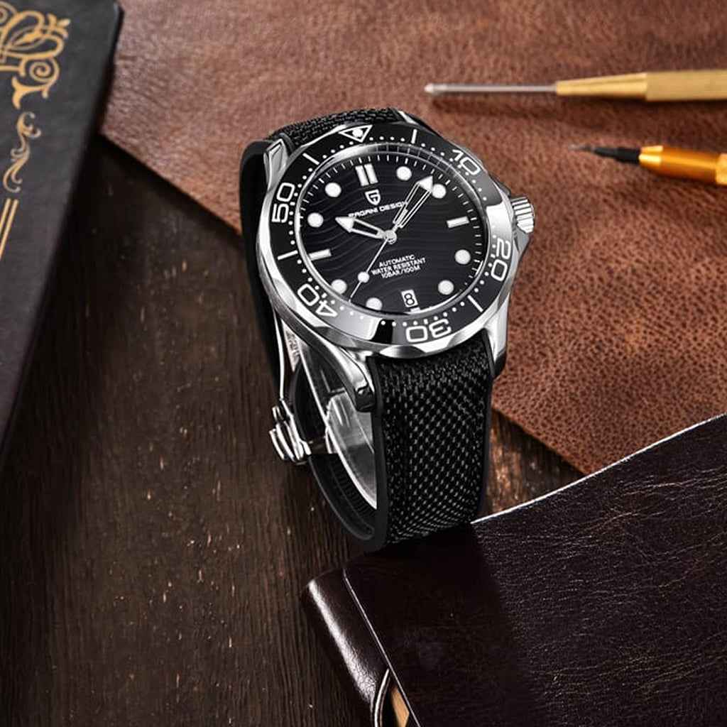 A pulseira do Pagani Design Majesticum é cuidadosamente projetada com materiais premium, combinando a resistência do nylon e a leveza da borracha. Proporciona um conforto incomparável e uma sensação única de estar usando um relógio quase imperceptível no pulso.