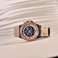A pulseira do Pagani Design Majesticum Vigor é cuidadosamente projetada com materiais premium, combinando a resistência do nylon e a leveza da borracha. Proporciona um conforto incomparável e uma sensação única de estar usando um relógio quase imperceptível no pulso.