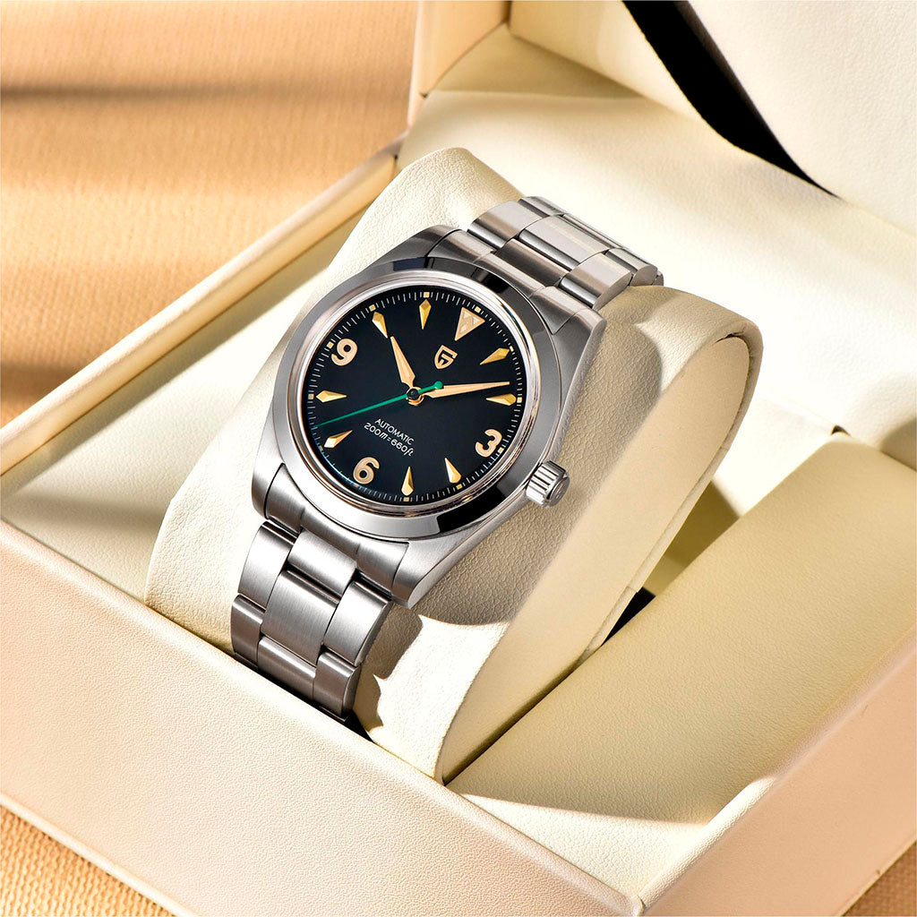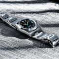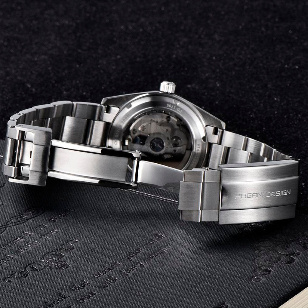 A pulseira do Pagani Design Marseille Black é cuidadosamente projetada com aço inoxidável 316L, combinando a resistência do aço e a leveza do material. Proporciona um conforto incomparável e uma sensação única de estar usando um relógio quase imperceptível no pulso.