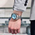 Das Armband der Pagani Design Monaco Argent Azura ist sorgfältig aus 316L-Edelstahl gefertigt und vereint Robustheit mit Leichtigkeit. Es bietet unvergleichlichen Tragekomfort und vermittelt das Gefühl, eine fast schwerelose Uhr am Handgelenk zu tragen.