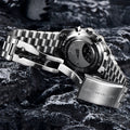 A pulseira do Pagani Design Monarch Helios é cuidadosamente projetada com materiais premium, combinando a resistência e leveza do aço inoxidável 316L. Proporciona um conforto incomparável e uma sensação única de estar usando um relógio quase imperceptível no pulso.